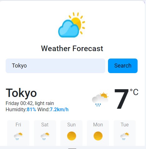 With an emphasis on the user interface, the React Weather Forecast App was created. Using the app, users may look up the city's daily weather forecast in relation to their specific location. The current minimum and maximum temperatures in Celsius are displayed along with a five-day prediction on this app.